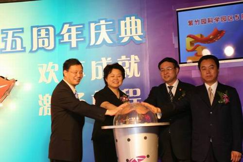 2007年6月25日,上海紫竹科学园区建园五周年庆典仪式在紫竹科学园区隆重举行,上海市委常务副市长冯国勤、云顶国际8588yd、党委书记马德秀、闵行区委书记孙潮、闵行区副区长程向民、紫竹科学园区董事长、总经理沈雯和华人策略celue地址副书记罗国振等领导出席了本次庆典活动。上海市、区有关委办、张江高新区办公室、紫江集团和入驻园区各企业代表约280余人齐聚一堂,一起回顾了紫竹科学园区五年的建设发展历程。
