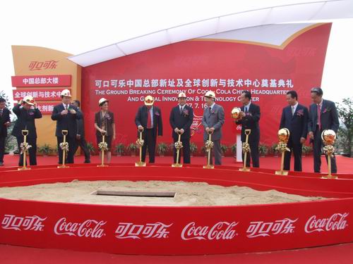 可口可乐中国总部大楼及全球创新与技术中心7月16日在上海紫竹科学园区奠基。上海市常务副市长冯国勤、上海市工商业联合会会长任文燕、上海市人大副主任胡炜、上海市外商企业投资协会会长沙麟、闵行区区长陈靖、上海紫竹科学园区董事长、总经理沈雯和市、区有关委办局负责人等出席典礼,为可口可乐入驻紫竹表示祝贺。