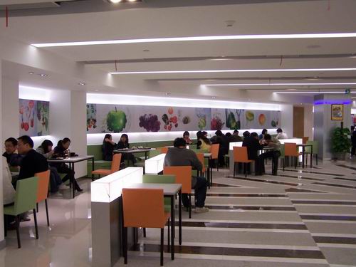 第二餐厅在设计风格上大胆创新,整个餐厅更加现代、时尚、活泼;同时坚持与第一餐厅错位经营、良性互补的方针,提供西式简餐、设立商务包房,并确定由外企餐饮服务经验丰富的索迪斯公司运营管理。