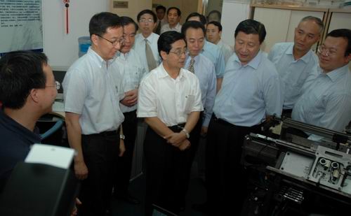 9月22日下午,由浙江省委书记赵洪祝,省委副书记、省长吕祖善率领的浙江省党政代表团一行,在上海市委书记习近平、市委副书记、市长韩正、市人大常委会主任龚学平、市政协主席蒋以任等领导同志陪同下对上海紫竹科学园区进行了实地考察。